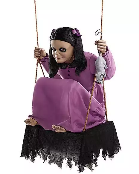 Catch your guests by surprise this Halloween when you shock them with the sight of the Rat Girl animatronic. Just because she has an innocent face, doesn’t mean she’s not up to her devilish deeds. The Rat Girl Animatronic hangs at just about six feet tall and eerily sings and hums her favorite tune of “three blind mice”, all while watching your every move with her side to side moving eyes. With a realistic swinging back and forth motion that’ll have anyone fooled, when this animatronic comes to life you better hope it’s not lunchtime for her precious rats!