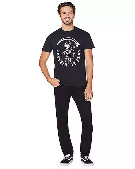 Who needs a costume when you can just creep it real? This black and white tee is the perfect addition to your Halloween swag.