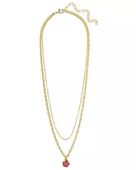 Begin your very own tale as old as time with this beautiful jewelry set! This officially licensed set includes an enchanting goldtone necklace, which is finished with a rose, as well as two matching rose earrings. Show your love for Beauty and the Beast with these lovely earrings!