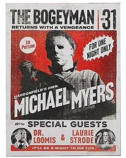 Add some horror vibes to your home decor when you hang this Michael Myers Poster in your home. He has many nicknames like “The Shape” and “The Bogeyman” and everyone will know you’re a fan of this slasher once you add this poster to your décor.